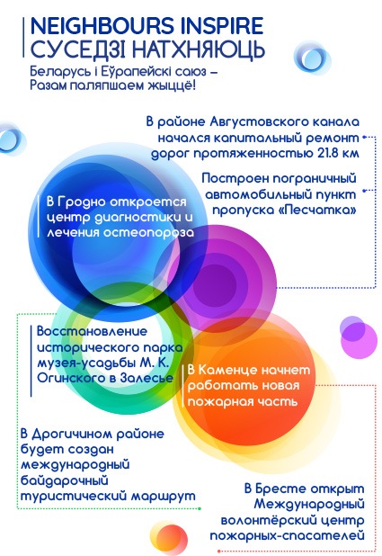 ЕС также выделил 22 млн. евро на реализацию шести крупных инфраструктурных проектов. Они нацелены на обустройство транспортной инфраструктуры и увеличение пропускной способности пунктов пересечения границы трех стран, улучшение условий жизни нелегальных иммигрантов и беженцев, а также условий обучения в образовательных учреждениях Беларуси и Литвы.